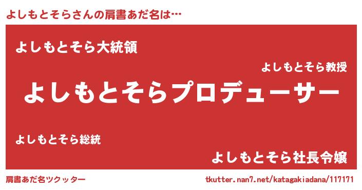 | ファンタジー風あだ名 | 『エターナルヨシモトソラー』 |