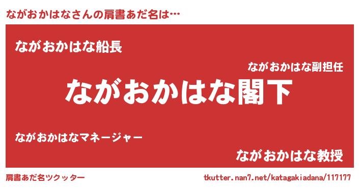 | 女子向けラノベタイトル風あだ名 | 『ながおかはなストレイドッグス』 |