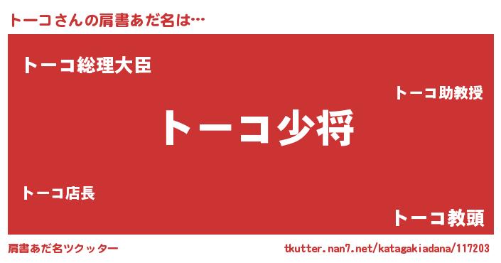 | 男性向けラノベタイトル風あだ名 | 『トーコスレイヤー』 |