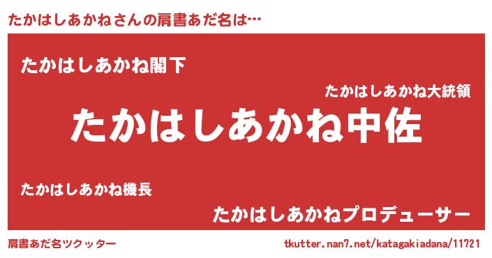 | 男性向けラノベタイトル風あだ名 | 『タカハシアカネスレイヤー』 |
