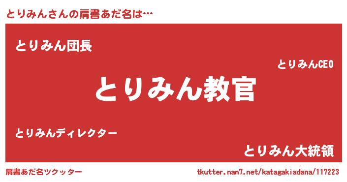 | 意味不明あだ名 | 『住所不定無職とりみん(43歳)』 |