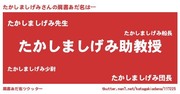 | ヘコむあだ名 | 『たかしましげみ(笑)』『たかお』 |