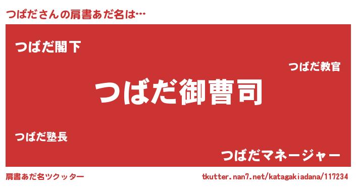 | 男性向けラノベタイトル風あだ名 | 『つばだの憂鬱』『魔弾の王とつばだ』 |