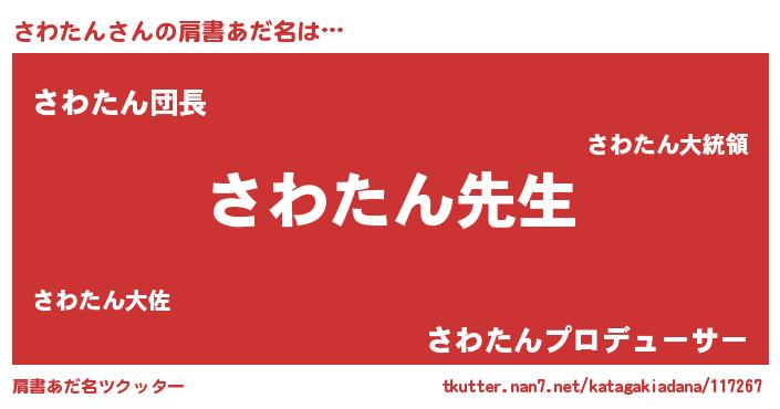 | 男性向けラノベタイトル風あだ名 | 『さわたんという概念が存在しない退屈な世界 』 |
