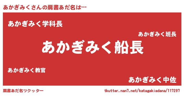 | 欧米人風あだ名 | 『あかぎみく・ステッグマイヤー』 |