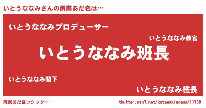 | 意味不明あだ名 | 『とにかく怪しいいとうななみ』 |
