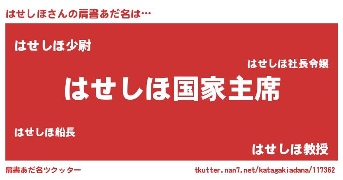 | ヒーロー風カッコイイあだ名 | 『ウルトラはせしほマン』『ネオハセシホ』 |