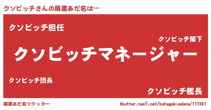 | ファンタジー風あだ名 | 『クソディッシュ』『カーククソラー』 |