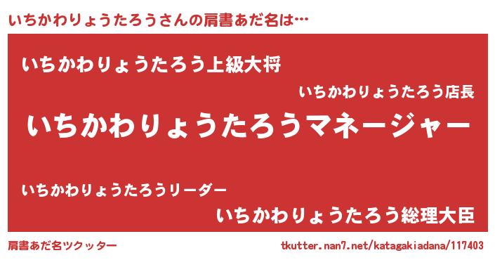 | 男性向けラノベタイトル風あだ名 | 『いちかわりょうたろうに滅ぼされるだけの簡単なお仕事です』 |