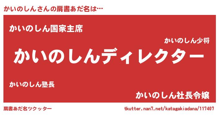 | 恥ずかしいあだ名 | 『かいっちょ』『プリティーかいのしん』 |