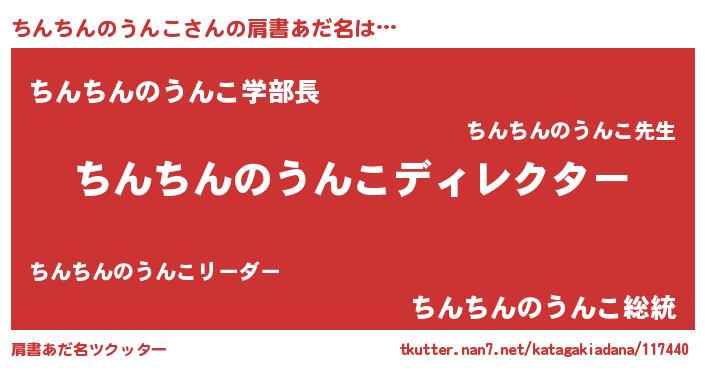 | 男性向けラノベタイトル風あだ名 | 『はたらくちんちんのうんこさま!』 |