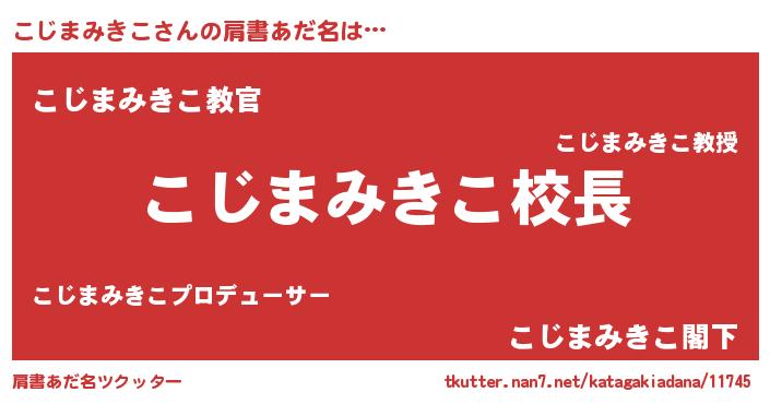 | 女子向けラノベタイトル風あだ名 | 『こじまみきこの契約王妃』 |
