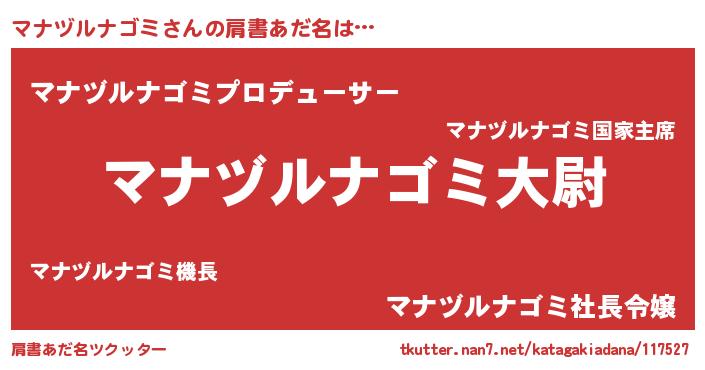 | 男性向けラノベタイトル風あだ名 | 『マナヅルナゴミスレイヤー』 |
