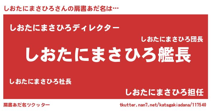 | 可愛いあだ名 | 『しーみん』『しおたにまさひろママ』 |