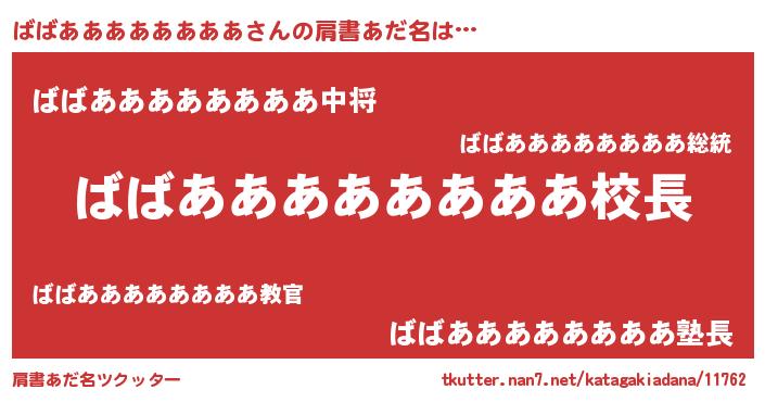 | 男性向けラノベタイトル風あだ名 | 『ばばああああああああという概念が存在しない退屈な世界 』 |