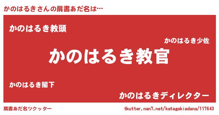 | ヘコむあだ名 | 『かのはるき(笑)』『かの太郎』 |