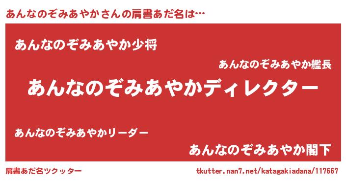 | ヒーロー風カッコイイあだ名 | 『究極戦士アンナノゾミアヤカ』 |