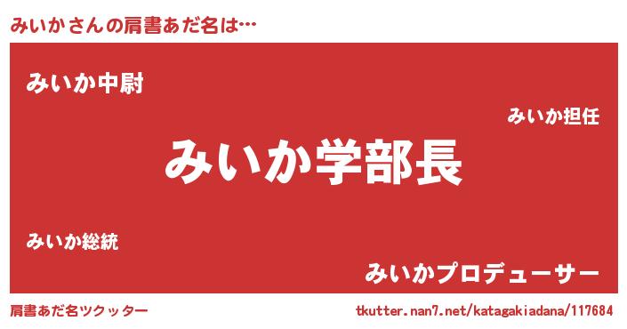 | ヒーロー風カッコイイあだ名 | 『正義の使者みいか』『ネオミイカ』 |