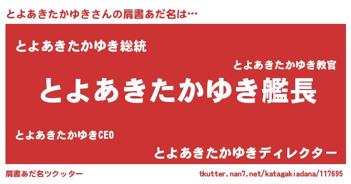 | ヒーロー風カッコイイあだ名 | 『究極戦士トヨアキタカユキ』 |