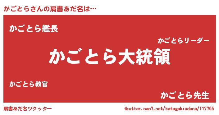 | ヒーロー風カッコイイあだ名 | 『ウルトラかごとらマン』『ネオカゴトラ』 |