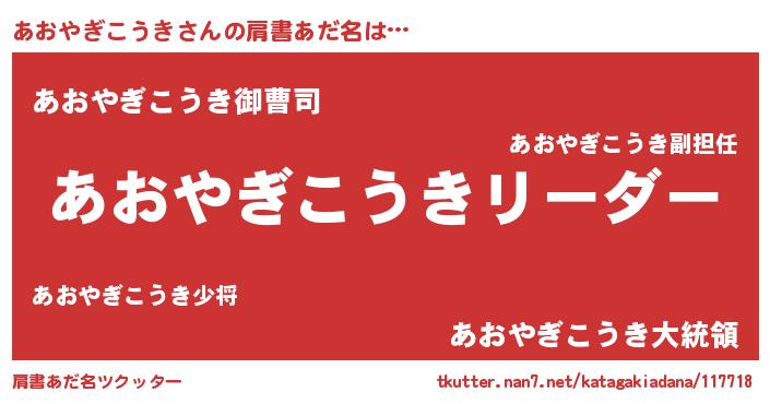 | 意味不明あだ名 | 『とにかく怪しいあおやぎこうき』 |