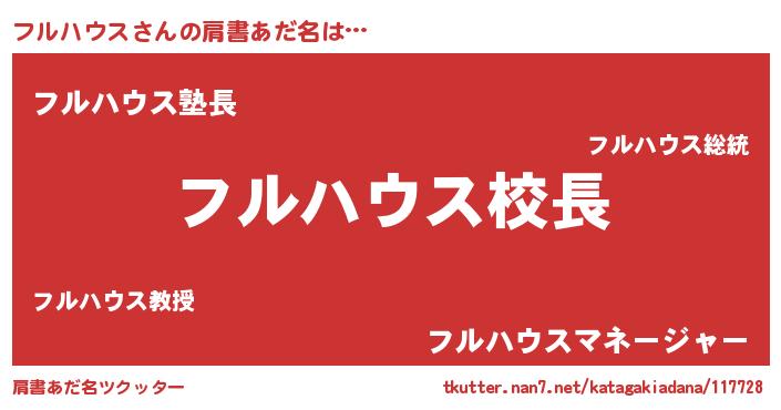 | 男性向けラノベタイトル風あだ名 | 『誰もが恐れるあのフルハウスが、ぼくの専属メイドになるようです。』 |