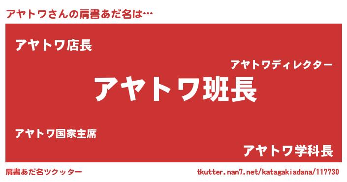 | 意味不明あだ名 | 『とにかく怪しいアヤトワ』 |