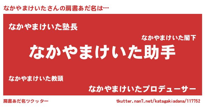 | 男性向けラノベタイトル風あだ名 | 『ノーゲーム・ノーナカヤマケイタ』 |