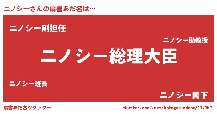 | ポケモン風あだ名 | 『ニノシダネ』『ゼニニノ』 |