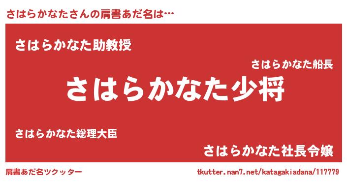 | 男性向けラノベタイトル風あだ名 | 『転生したらさはらかなただった件』 |