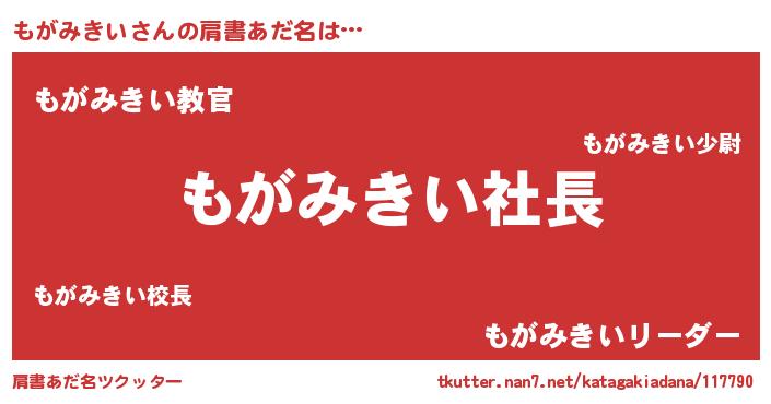 | ヒーロー風カッコイイあだ名 | 『スーパーモガミキイ』『仮面モガダー』 |