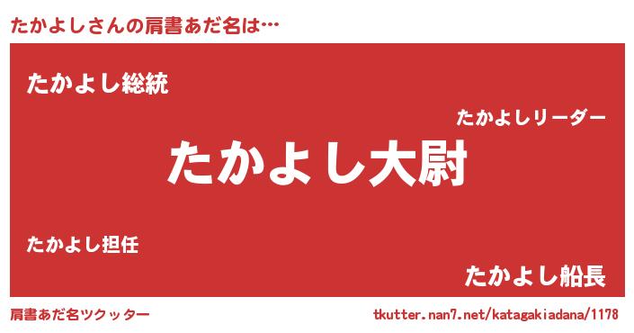 | ヘコむあだ名 | 『たかっぺ』『たかよし(爆)』『豆乳』 |
