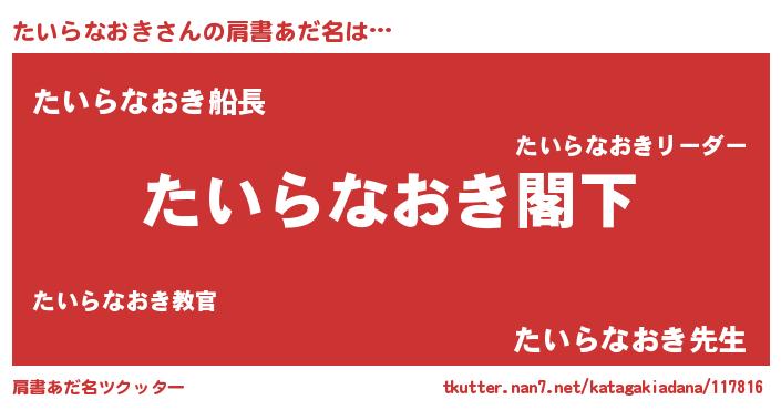 | ヘコむあだ名 | 『たいらなおき(笑)』『たいお』 |