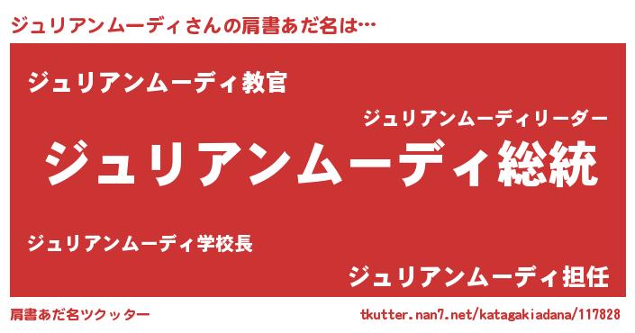 | 欧米人風あだ名 | 『ケンブリッジジュリアンムーディ』 |