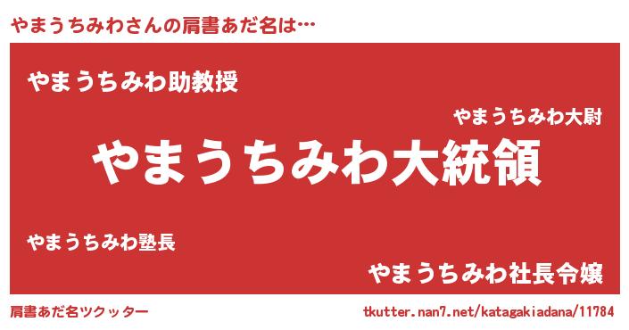 | 男性向けラノベタイトル風あだ名 | 『やはりやまうちみわの青春ラブコメはまちがっている 』 |