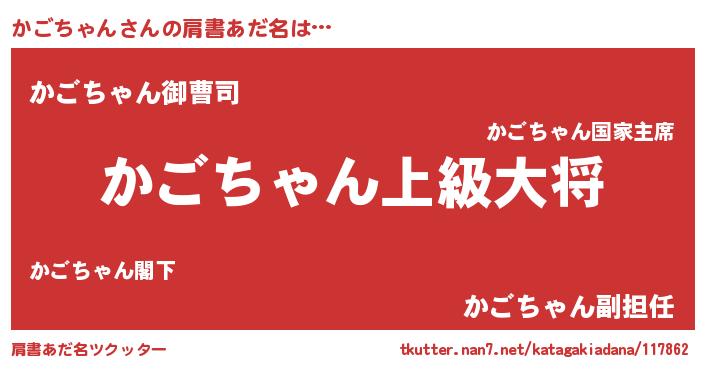 | 男性向けラノベタイトル風あだ名 | 『かごちゃん~年齢イコール彼女いない歴の魔法使い~』 |