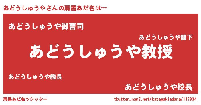 | 女子向けラノベタイトル風あだ名 | 『あどうしゅうや恋絵巻』 |