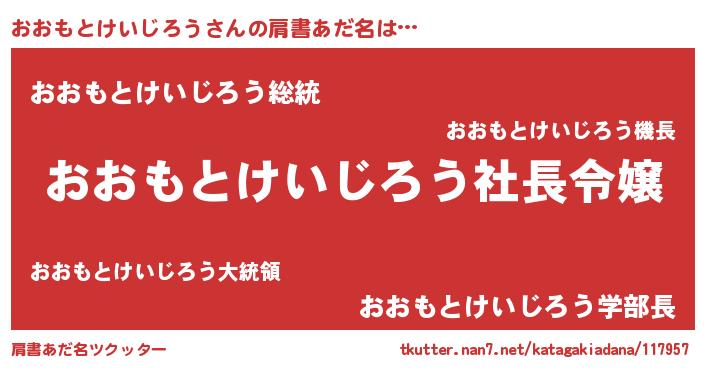 | 恥ずかしいあだ名 | 『プリティーおおもとけいじろう』 |