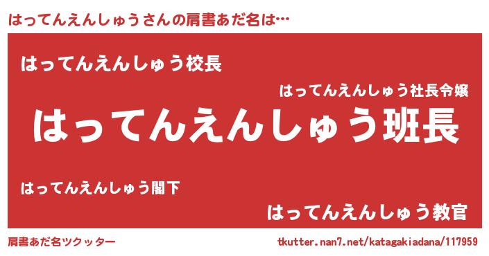 | 意味不明あだ名 | 『とにかく怪しいはってんえんしゅう』 |