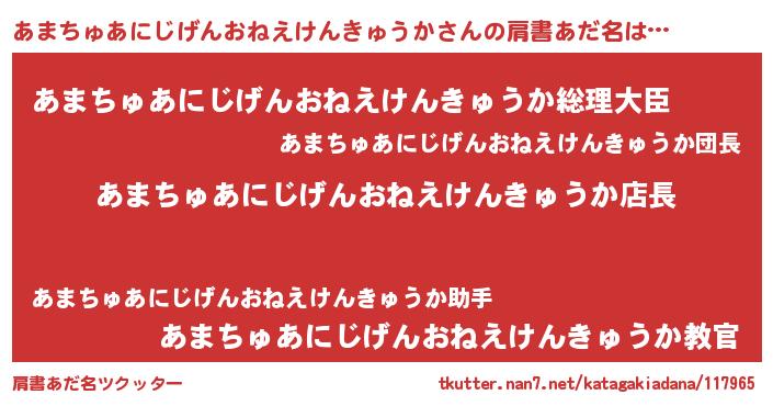 | ヒーロー風カッコイイあだ名 | 『スーパーアマチュアニジゲンオネエケンキュウカ』 |
