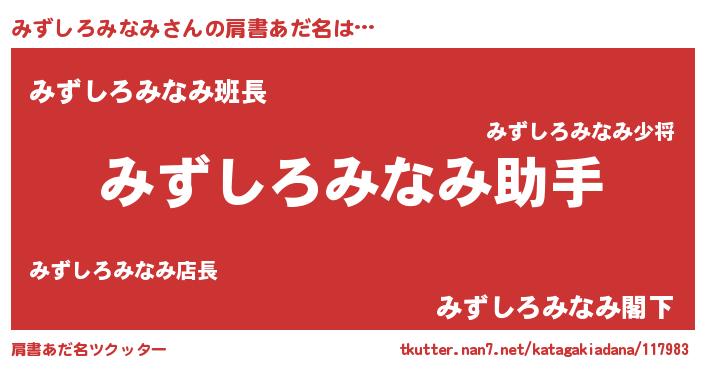| ポケモン風あだ名 | 『ミックウザ』『ヒミズシロミナミ』 |