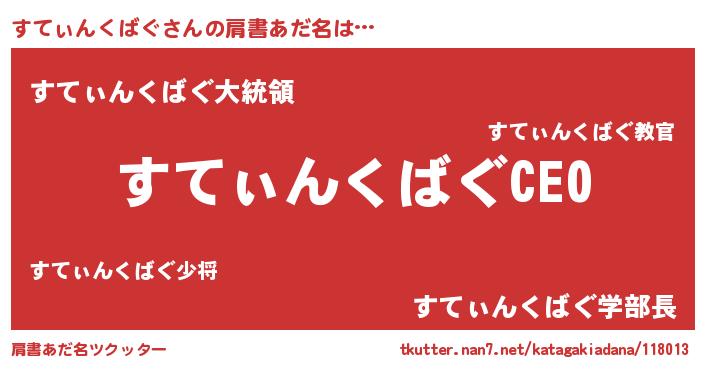| 恥ずかしいあだ名 | 『プリティーすてぃんくばぐ』『すてちん』 |