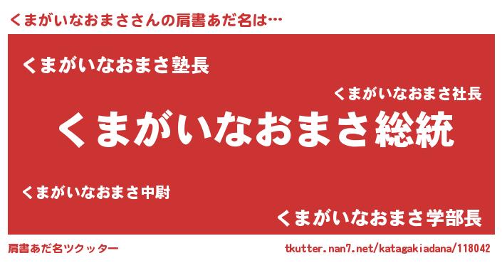| 意味不明あだ名 | 『自称くまがいなおまさ』 |