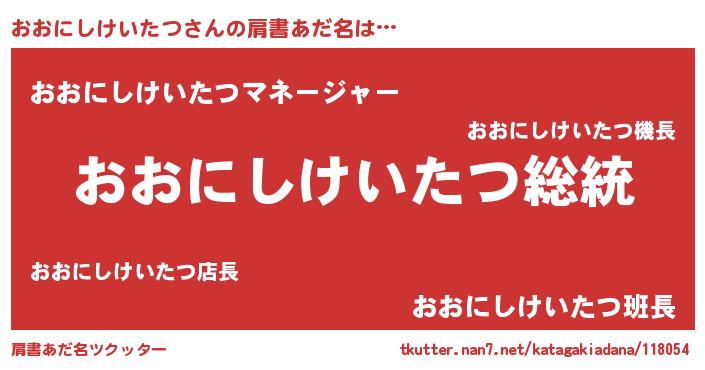 | 女子向けラノベタイトル風あだ名 | 『おおにしけいたつなんてお断りですっ。』 |