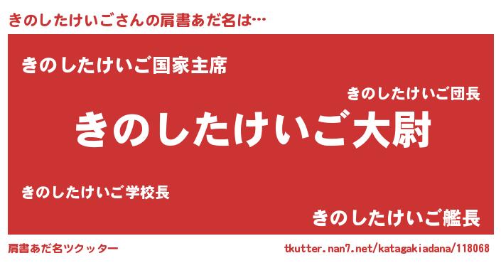 | 男性向けラノベタイトル風あだ名 | 『キノシタケイゴスレイヤー』 |