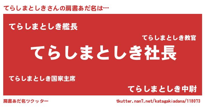 | 男性向けラノベタイトル風あだ名 | 『てらしまとしきの憂鬱』 |