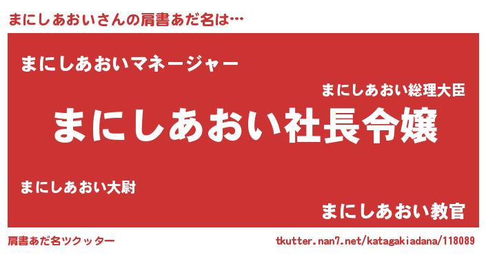 | 恥ずかしいあだ名 | 『プリティーまにしあおい』『まにっちょ』 |