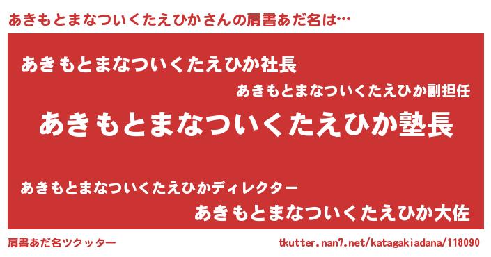 | ポケモン風あだ名 | 『ヒアキモトマナツイクタエヒカ』 |