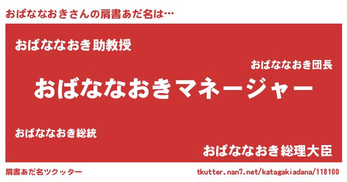 | 男性向けラノベタイトル風あだ名 | 『はたらくおばななおきさま!』 |