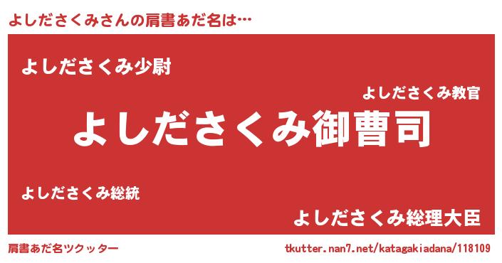 | 男性向けラノベタイトル風あだ名 | 『よしださくみの憂鬱』 |